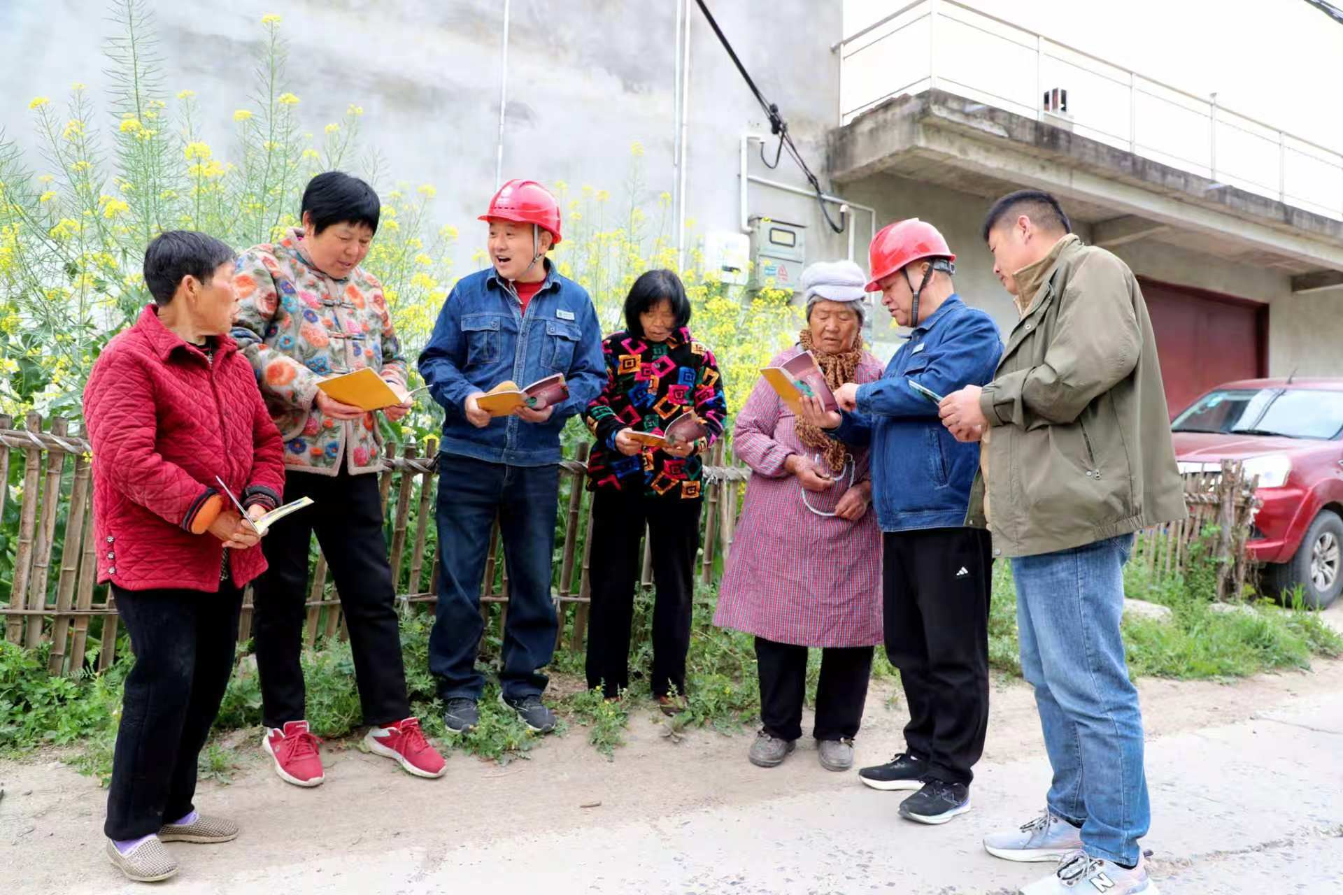 在安徽省亳州市涡阳县龙山镇殷庙村,国网安徽涡阳县供电公司工作人员正在向群众宣传春季安全用电知识。